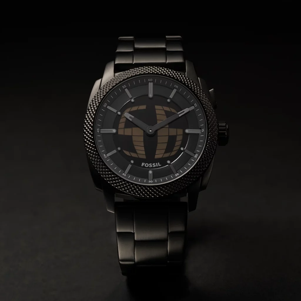 La pieza central de esta nueva colección es el Machine Big Tic, un modelo que toma la tecnología analógico-digital del Big Tic original y la combina con el lenguaje industrial característico de la línea Machine de Fossil. El resultado es un reloj robusto y contemporáneo que mantiene la animación en la esfera como elemento protagonista.