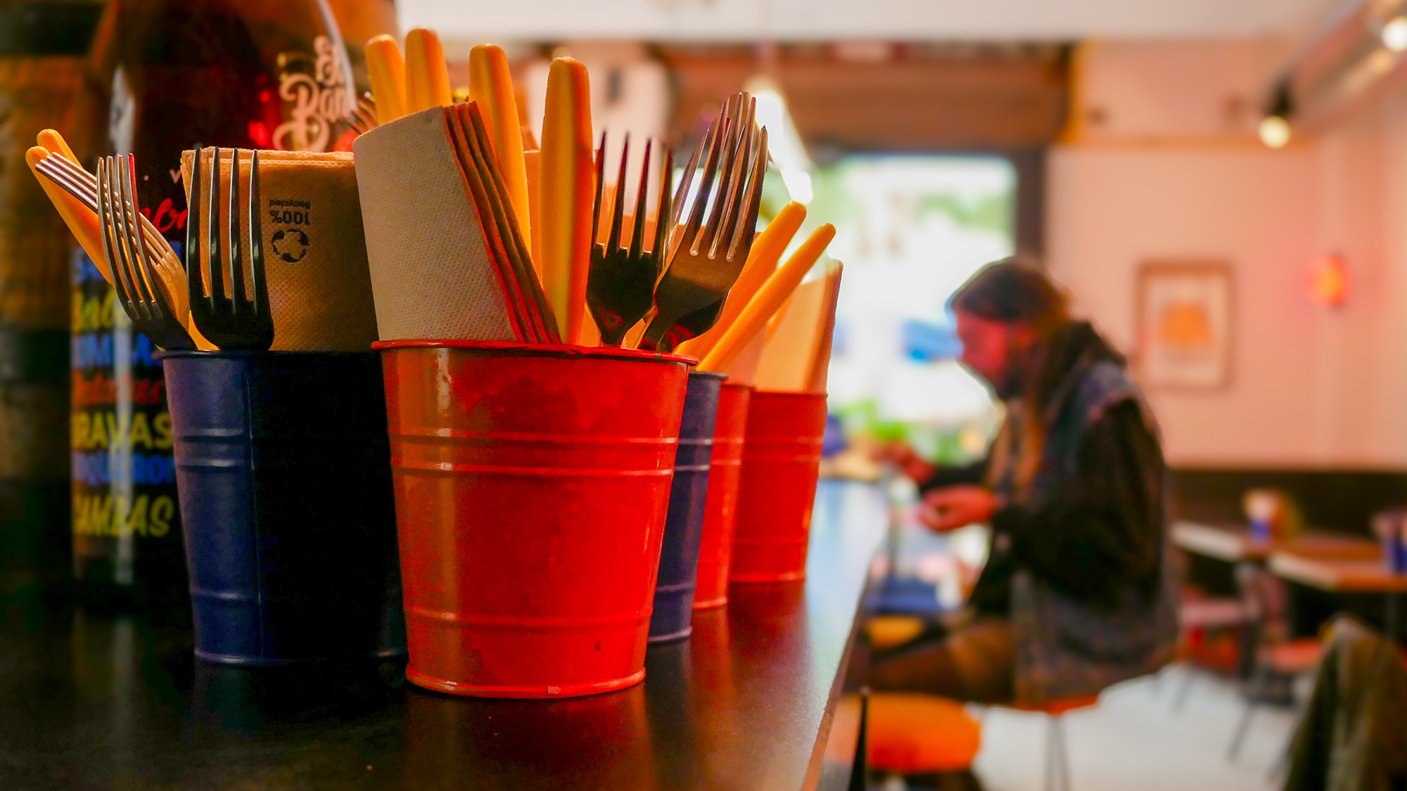 El Bar Costa (C/ Joaquin Costa, 53) es un precioso establecimiento decorado con mimo e inspirado en las coctelerías clandestinas durante la ley seca. Su establecimiento ofrece habitualmente algo de picoteo para acompañar su carta líquida, como esta tapa de Tataki de ternera marinada con especias árabes con crujiente de patatas.
